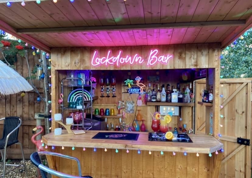 David Beckham was one of the first celebs to showcase his garden bar. The retired football star took to his Instagram page to share a selfie with his drink of choice and his bright red neon bar sign.
