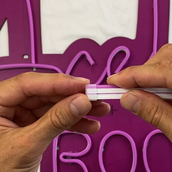 - Insert end caps over the ends of neon flex strips that do not reconnect to another part of the design.